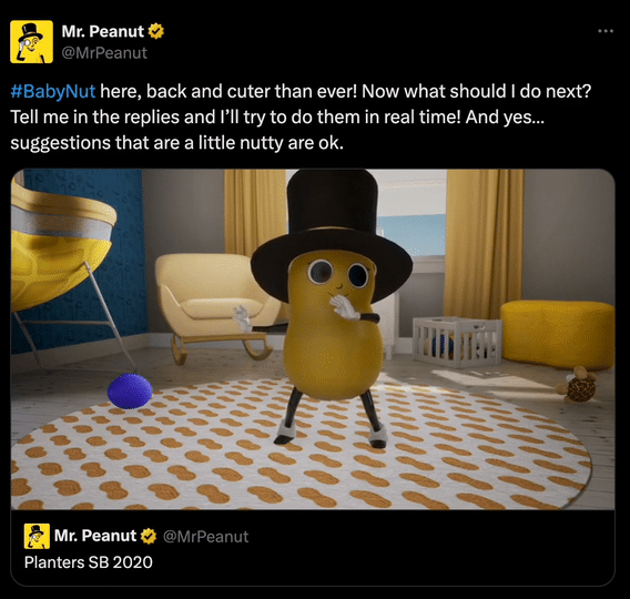 We saw an opportunity to rebirth Mr. Peanut not as an ad, but as a living meme, something cute, weird, and remixable enough to be claimed and spread by the internet.
